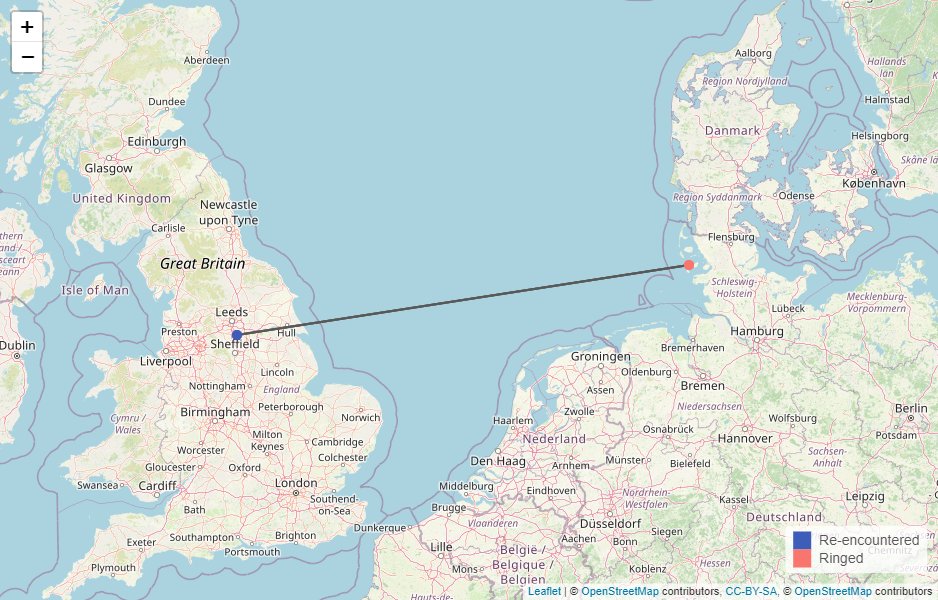 It was ringed as a pullus in Hallig-Norderoog,